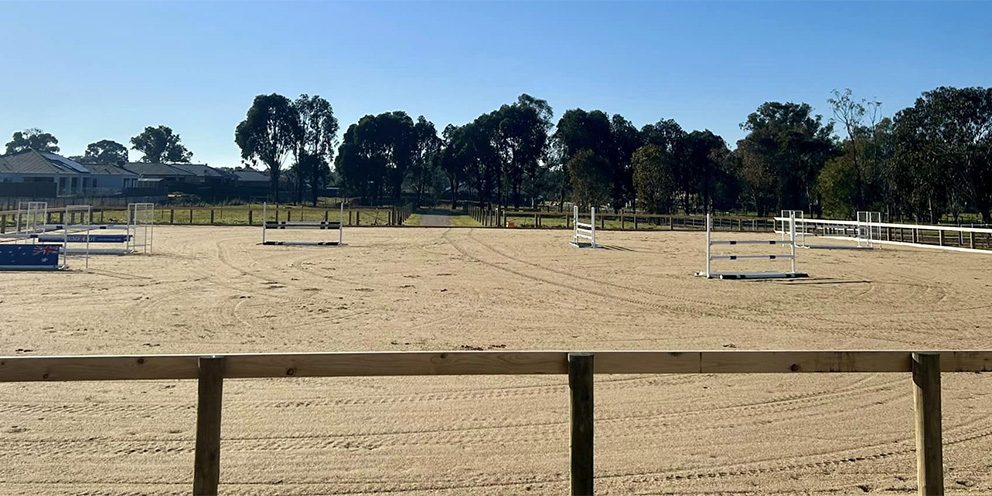 Jul152024NewsWe are thrilled to announce the completion of the outdoor show jumping arena including a full jumps course, sprinklers and fencing!